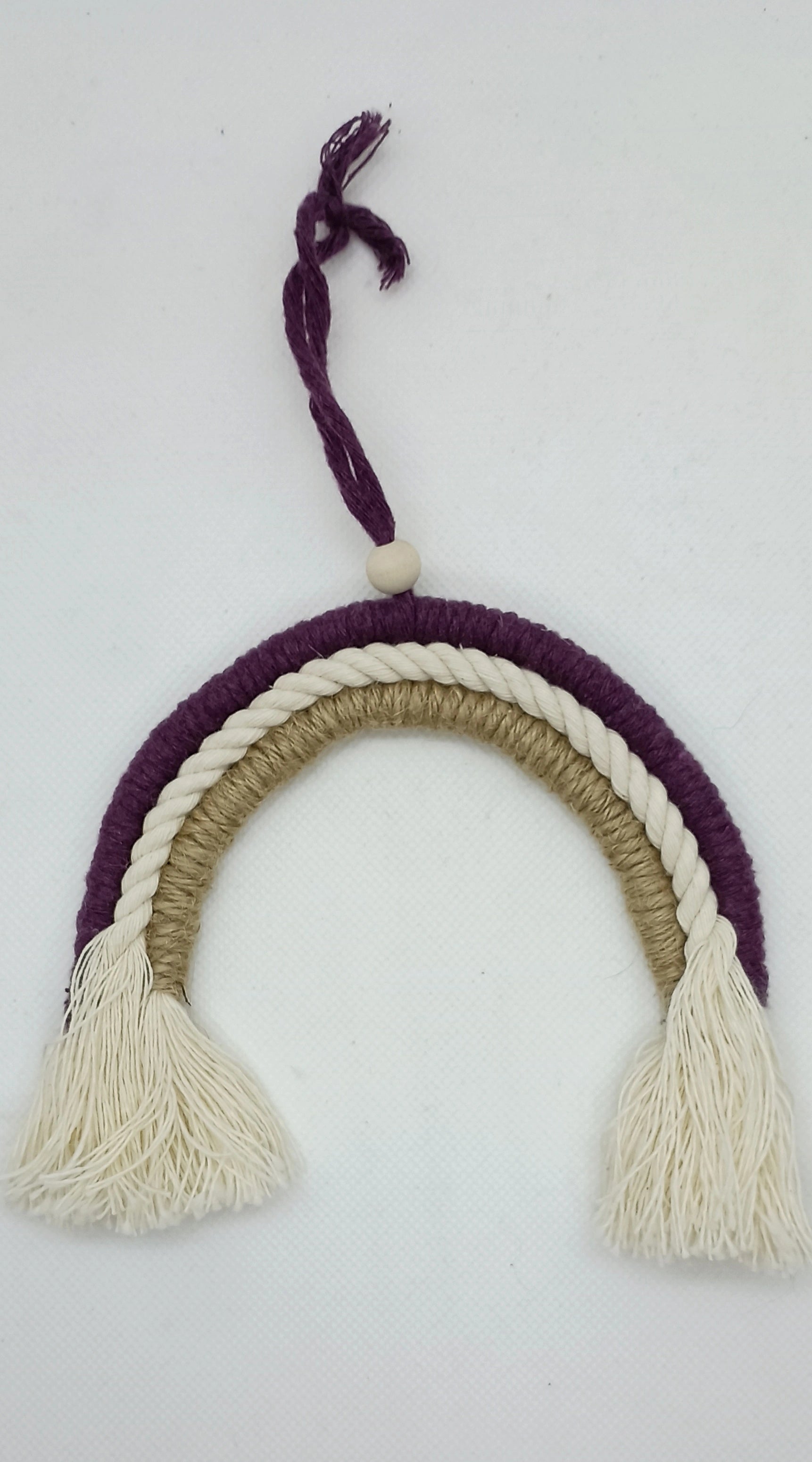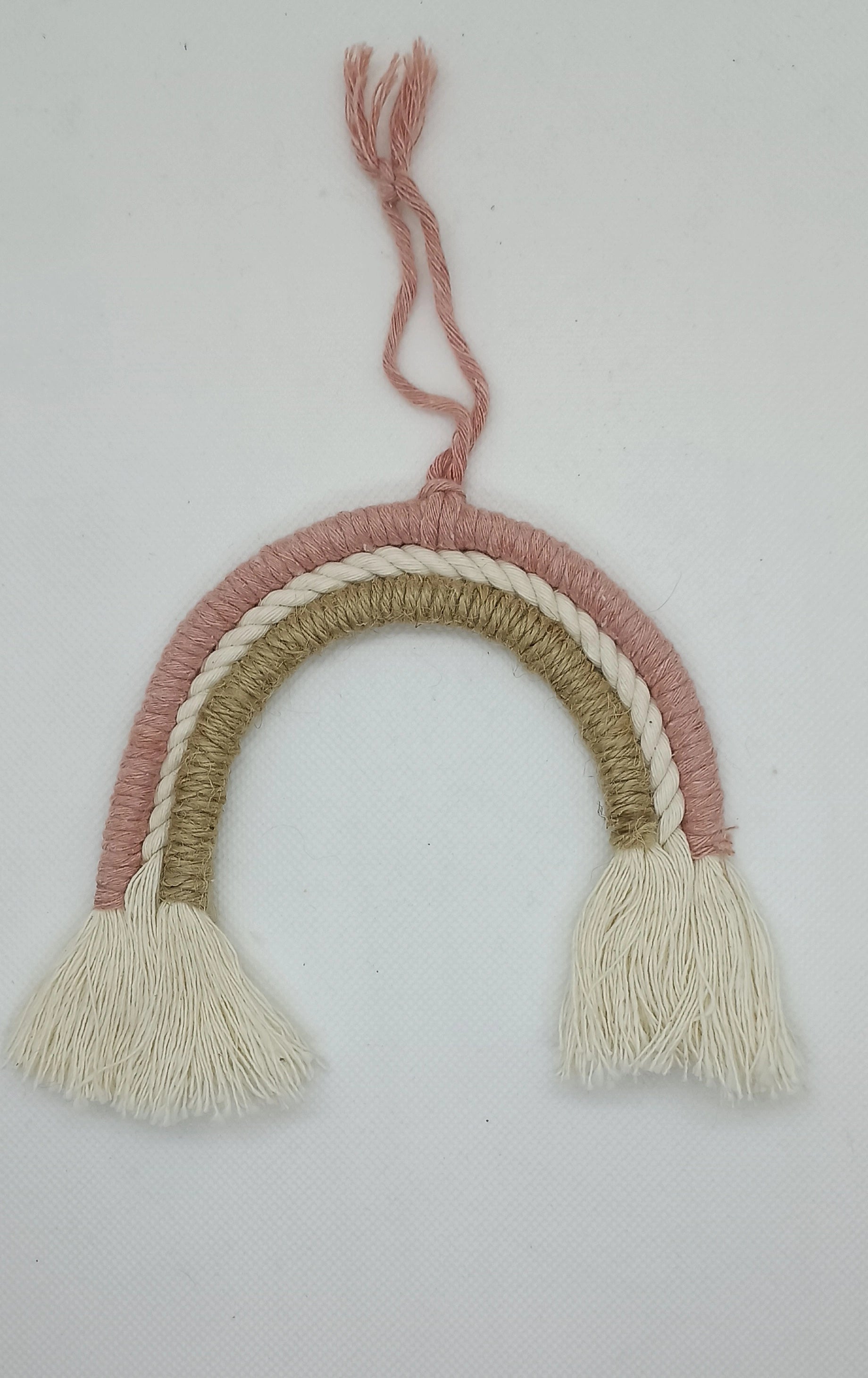 Installez un rayon de douceur dans la chambre de votre bébé/enfant grâce à ce petit arc-en-ciel en macramé artisanal.