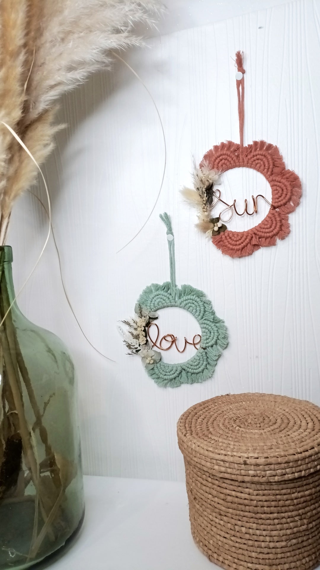 Le mini mandala est réalisé sur un anneau en métal de 10 cm, et à partir de coton certifié Oeko Tex acheté en France et/ou en Europe.