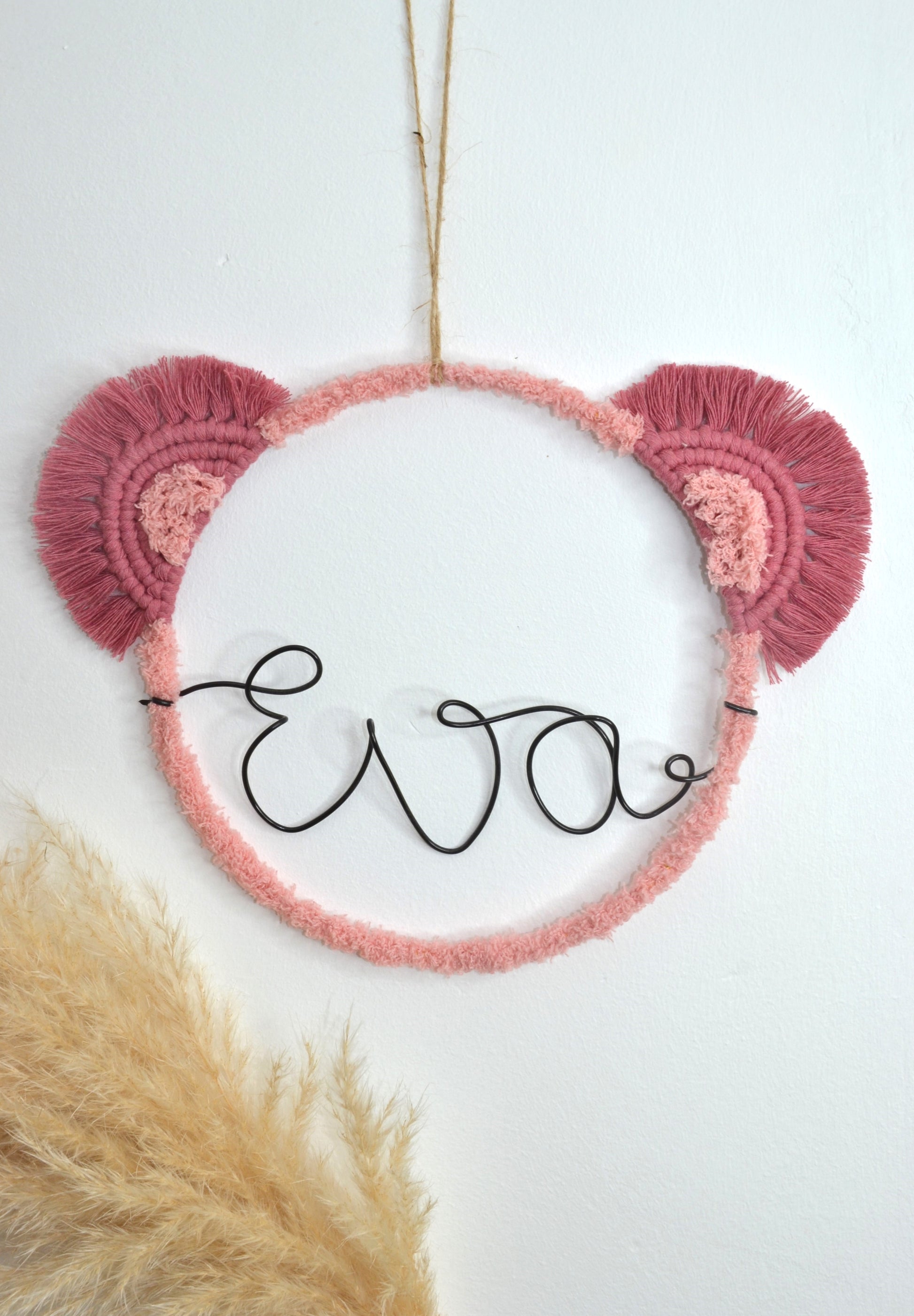 Créez une ambiance douce et rassurante pour la chambre de votre bébé / enfant grâce à cette tête d'ourson en macramé personnalisable. Une décoration murale unique et artisanale.